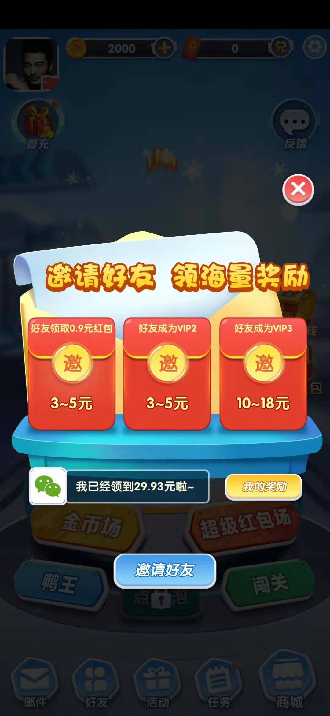 第二天任务:邀请一位好友登陆,次日可领0.5-1元随机红包。